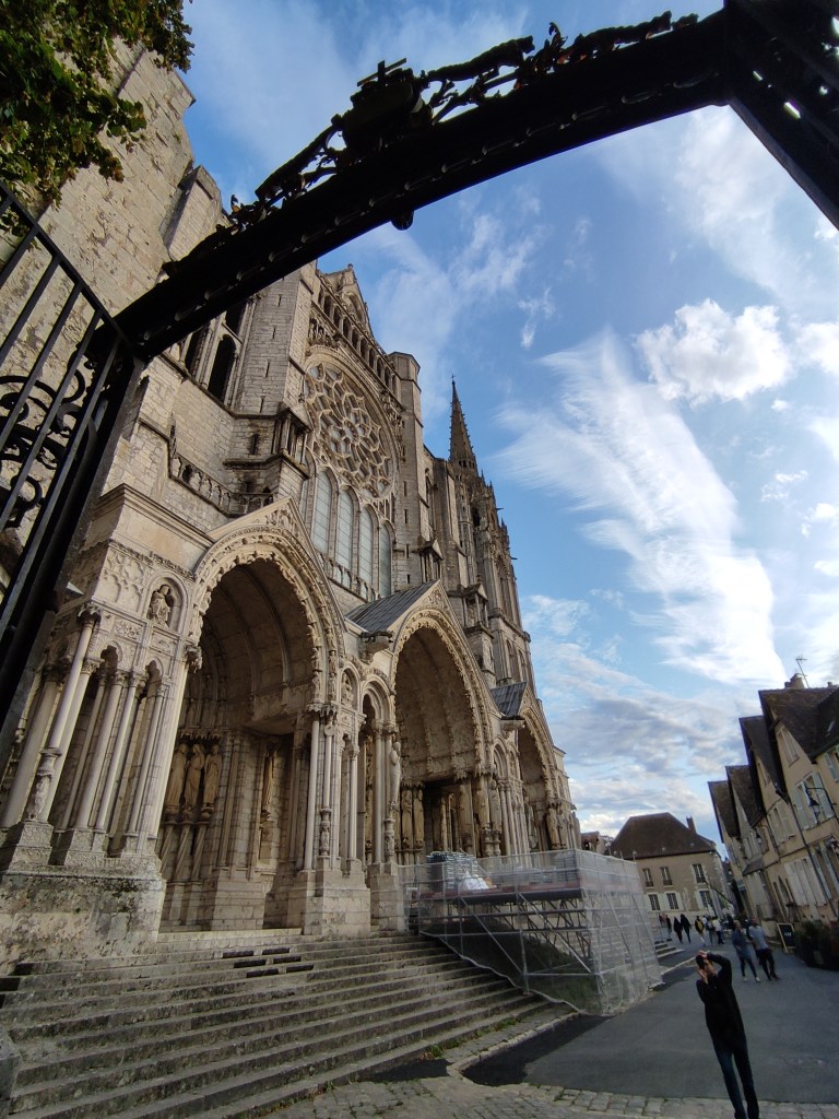 Wallfahrtsort, Zeitzeugin, ein Platz der Kunst – die Kathedrale von Chartres ist ein Ort, der die Phantasie anregt. Ein bisschen so wie in Dan Browns „Der da Vinci Code“ ziehen die Geister der Vergangenheit durch das riesige Bauwerk an mir vorbei. Also: Augen schließen und träumen! Getragen vom sanften Klang der Orgel. Bereits im vierten Jahrhundert stand an genau dieser Stelle eine große Kirche. Ihre heutige Form erhielt die Kathedrale nach einem verheerenden Brand im Jahr 1194. Welche Ritter und Könige sind hier wohl im Lauf der Zeit auf die Knie gesunken, um den Segen zu empfangen? Wer sich die Zeit nimmt, kann außerdem Geschichten in 3D erleben. Noch selten habe ich Skulpturen gesehen, die mit soviel Perspektive und Tiefe angelegt sind. Wie ein Comic aus einer anderen Zeit. Schönheit in Stein gemeißelt