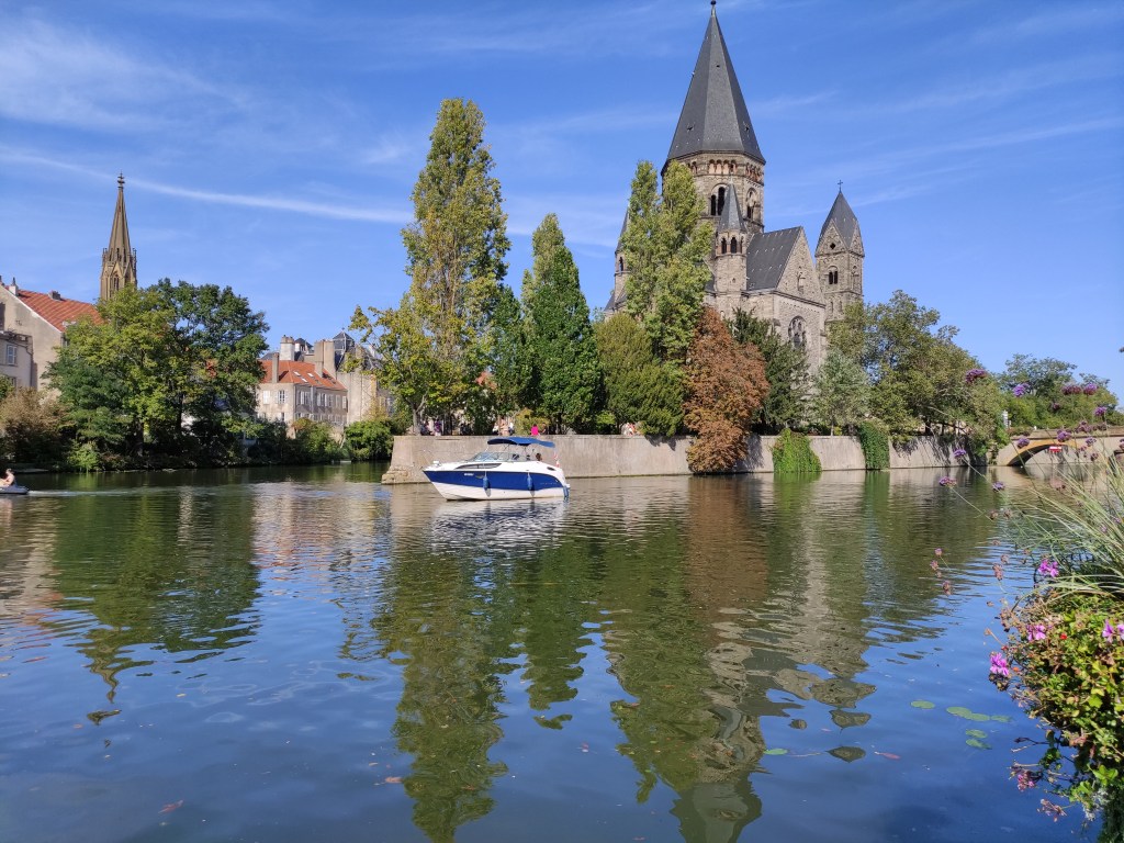Warum denn ausgerechnet Metz? Eine Frage, die in den letzten Tagen nicht nur einmal gestellt wurde… Na ganz einfach: welche Stadt kann schon auf 3000 Jahre Geschichte zurückschauen. Das sind nur wenige. Und als die Römer im Jahr 52 vor Christus Gallien eroberten, war Divodorum (heute Metz) größer als Lutetia. Für alle Nicht-Asterix-Leser: so hieß damals Paris. Zwischen den Flüssen Mosel und Selle baute der keltische Stamm der Mediomatiker eine Hauptstadt mit riesigem Amphitheater. Von Letzterem ist leider nichts mehr übrig, dafür steht an seiner Stelle unter anderem das hochmoderne Kunstmuseum „Centre Pompidou“. Und die Altstadt von Metz ist eine interessante Mischung unterschiedlicher Baustile. Von gotisch, über mittelalterlich bis hin zu wilhelminisch… Ich freue mich echt darauf noch mehr zu sehen.